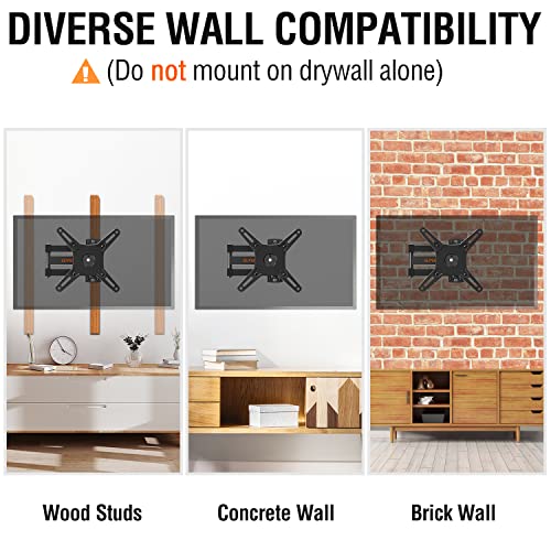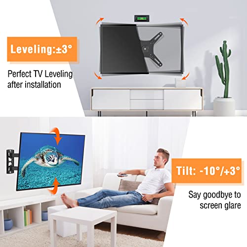 Adjustable for Max Flexibility – This TV wall mount bracket can tilt TV +3º/-10º to reduce glare, level +/-3º after installation for maximum viewing flexibility. The strong articulating arm provides a smooth 14.96″ extension and 2.67″ depth to the wall for saving space.