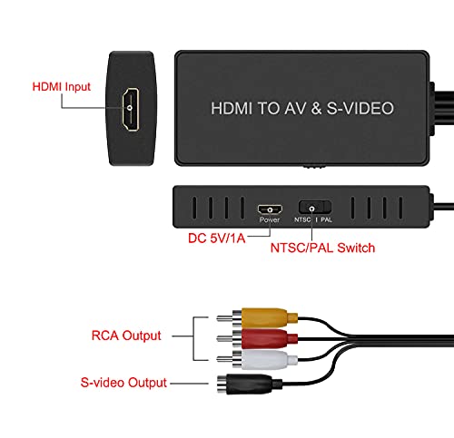 HDMI to Svideo Adapter Compatible with Apple TV /Roku /Xbox / STB/ VCR/ Blu-ray/ DVD/ PS3/ Laptop/ TV/ Projector etc.